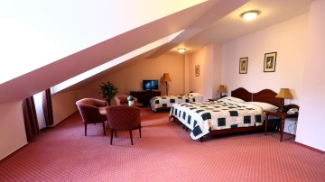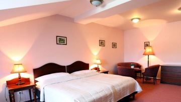 Vybavení pokojů: vlastní sociální zařízení, TV, SAT, minibar, trezor, telefon, stylový nábytek.