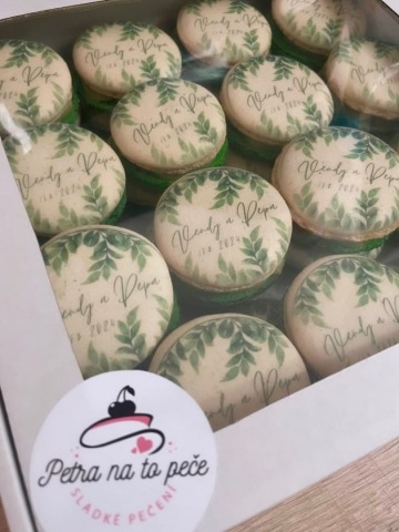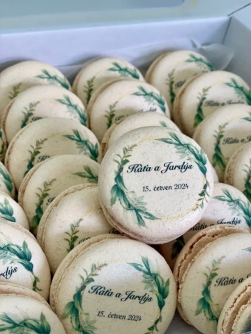 Makronky s vlastním potiskem - zašlete nám fotografii, logo či obrázek a my vám jej vytiskneme jedlými barvami na makronku. Připravíme i jiné sladké pohoštění, moderní i českou klasiku.