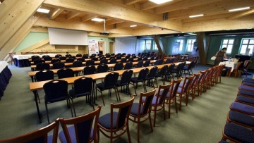 Technické vybavení: data projektory, promítací plátna, ozvučení konferenčních prostor, mikrofony, flipcharty, televize, prodlužovací kabely