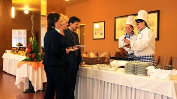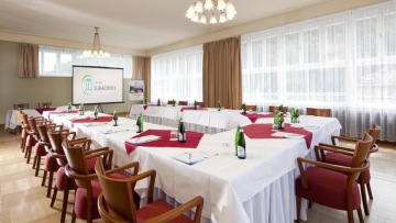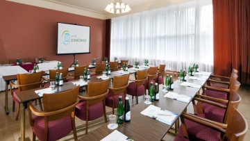 7 salonky pro 8 - 80 osob. Jednotlivé jednací prostory jsou spojeny foyer a chodbami ideálními pro konání doprovodných prezentací, registrací a prezencí. Specializujeme se na organizování konferencí a dalších akcí až do 400 osob včetně stravování a společenského a animačního programu.