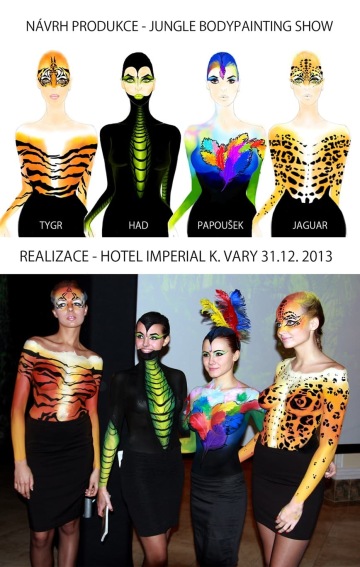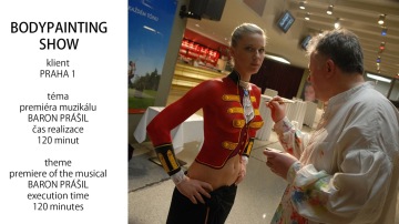 Při bodypainting show měním ženy v královny a nevšední bytosti. Odhalena je pouze vrchní polovina postavy. Rozmanitostí malířských technik a barev vytvořím za pomoci hudby kouzlo proměny. Show je scénická, v rozmezí 15-20 minut. Diváci jsou vždy ohromeni. Muži nadšeně tleskají a ženy s úžasem show sledují. Když se modelka po produkci prochází mezi hosty, sklízí obdivné pohledy a nabídky na společné focení s ní jsou samozřejmostí.