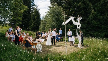 Doprovodíme Váš svatební obřad ať už pod širým nebem nebo v obřadní síni. Naším cílem je co nejlépe dokreslit atmosféru, zkrátka uděláme vše pro to, aby byl Váš den nezapomenutelný i díky hudbě. Skladby, které Vás budou provázet během svatebního obřadu si můžete vybrat z našeho pestrého repertoáru. Pokud je Vaším přáním skladba, kterou v našem repertoáru nenacházíte, neváhejte nás kontaktovat. Cenové nabídky jsou zpracovávány vždy individuálně s ohledem na Vaše přání a představy.